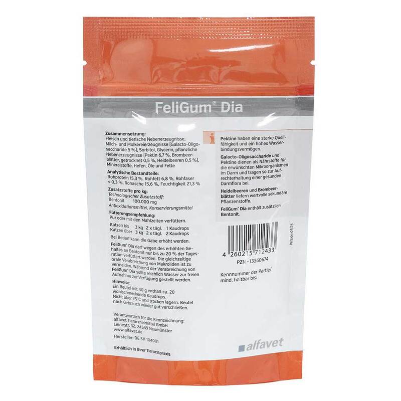 Während der Verabreichung von FeliGum® Dia sollte reichlich Wasser zur beliebigen Aufnahme zur Verfügung gestellt werden.