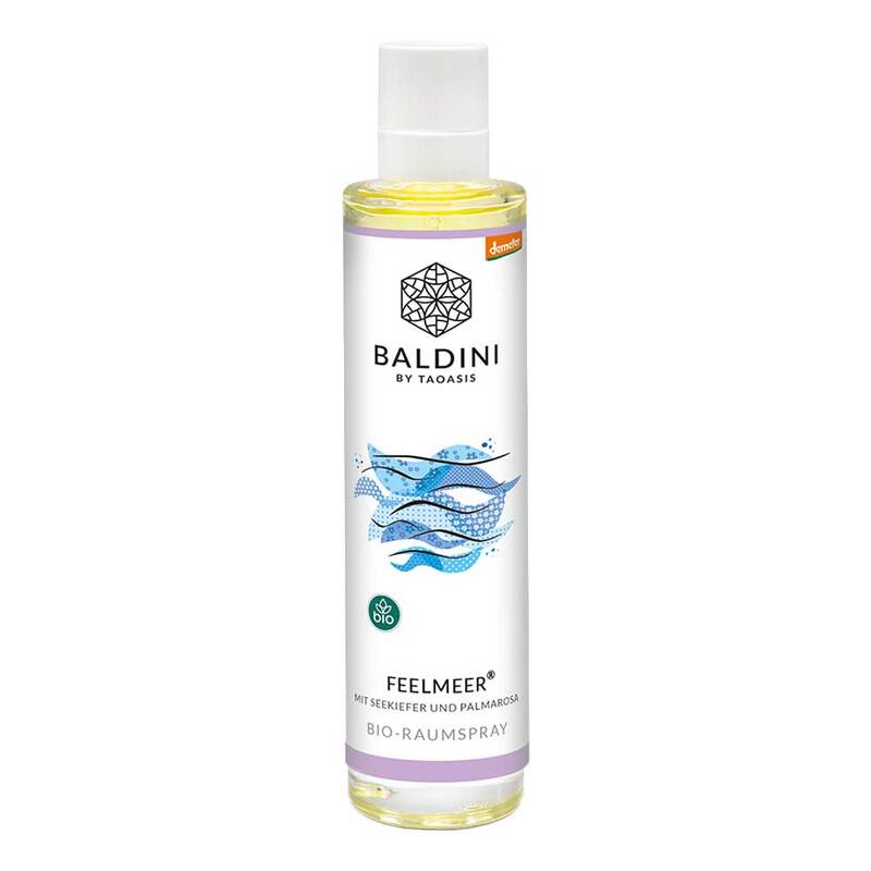 Das Demeter-Raumspray aus 100% naturreinen, ätherischen Ölen und demeter-Alkohol in einer hochwertigen Glasflasche mit Pumpsprüher. Baldini Feelmeer ist der erfrischend wohltuende Duft mit Seekiefer, Palmarosa und Zitrone.