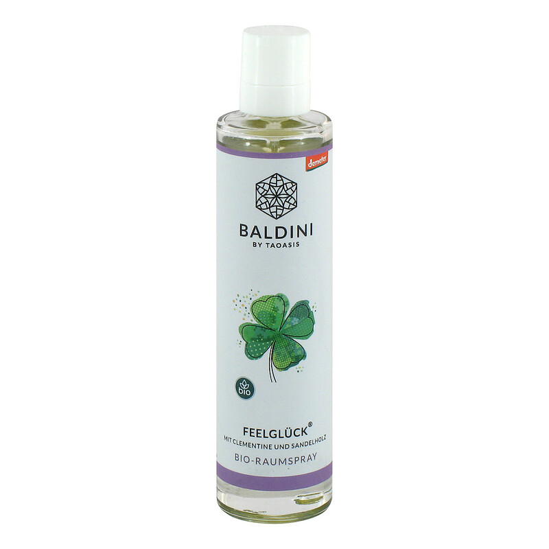 Das Demeter-Raumspray aus 100% naturreinen, ätherischen Ölen und demeter-Alkohol in einer hochwertigen Glasflasche mit Pumpsprüher. Baldini Feelglück ist der erfrischend harmonisierende Naturduft mit Clementine, Ingwer und Sandelholz.