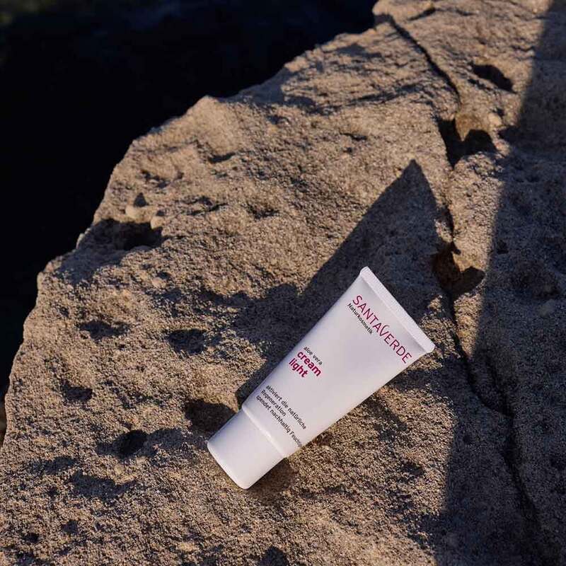 Reiner Aloe Vera Saft aktiviert die natürliche Regeneration und spendet in Kombination mit Hyaluron nachhaltig Feuchtigkeit. Zellschützender Apfelextrakt bewahrt die Hautelastizität. Mandelöl und Squalan aus der Olive versorgen die Haut mit beruhigenden Pflegewirkstoffen. Die Creme wird schnell von der Haut aufgenommen und hinterlässt sie hydratisiert und gepflegt. Die Aloe Vera Creme light ist geeignet für normale Haut und Mischhaut.
