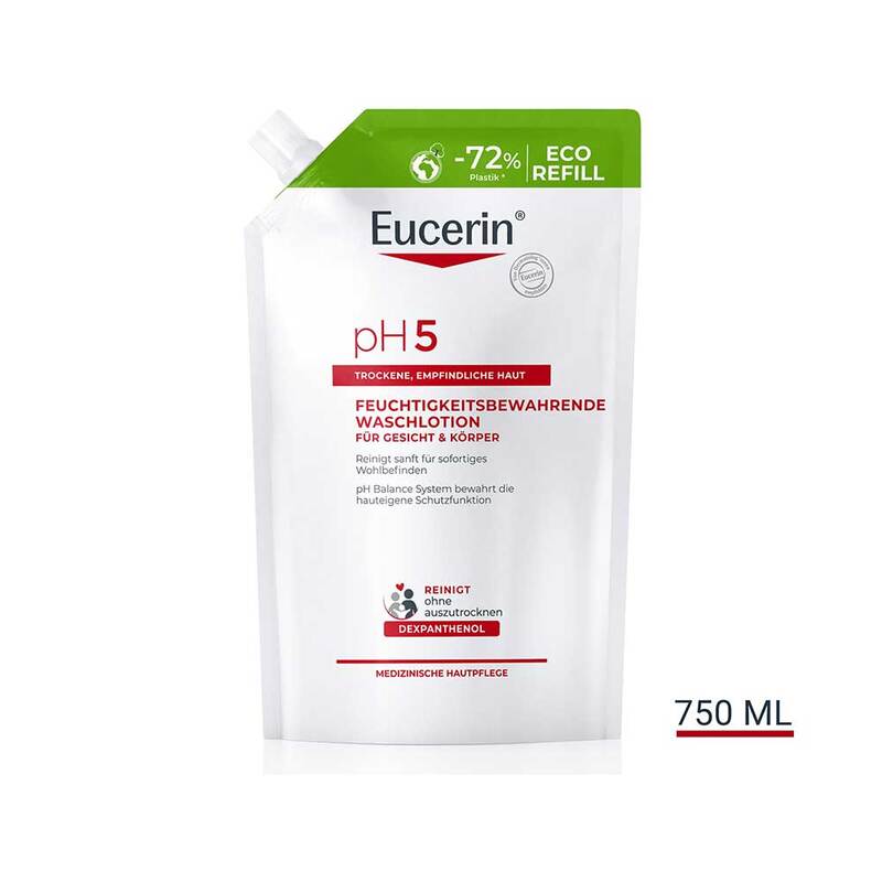 Die Eucerin pH5 Waschlotion ist ein seifenfreies, mildes Reinigungsprodukt für den Körper. Die Waschlotion eignet sich besonders für die sanfte Reinigung von Gesicht und Körper sowie für empfindliche und trockene Haut, denn diese neigt dazu, besonders auf Umweltreize mit Spannungsgefühl, Hautrötungen und Hautirritationen zu reagieren. Daher braucht strapazierte Haut eine besonders milde Reinigung, die ihre physiologische Balance aufrechterhält.