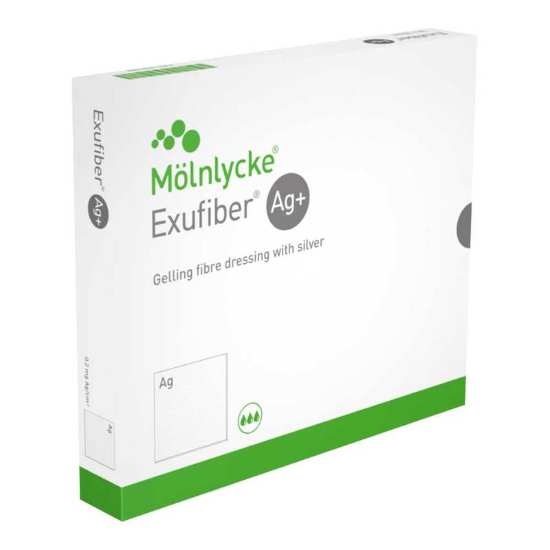 Exufiber Ag + 5x5 cm gelbild.Faserverband mit Silber, 10 St