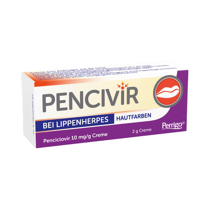 Pflichtangaben:Pencivir bei Lippenherpes hautfarben fu¨r Erwachsene und Kinder u¨ber 12 Jahre. Wirkstoff: 10 mg/g Creme (Wirkstoff: Penciclovir). Zur lindernden Therapie von Schmerzen und Juckreiz sowie zur Beschleunigung der Krustenbildung beim natürlichen Heilungsverlauf von akuten Episoden leichter Formen wiederholt auftretender Lippenbläschen (rezidivierender Herpes labialis). Enth. Cetylstearylalkohol und Propylenglycol. Packungsbeilage beachten! Zu Risiken und Nebenwirkungen lesen Sie die Packungsbeilagen und fragen Sie Ihren Arzt oder Apotheker. Rezeptfrei in Ihrer Apotheke. Perrigo Deutschland GmbH, Königstraße 26, 70173 Stuttgart