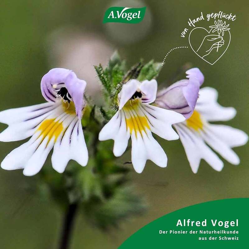 Mit Hyaluron und Euphrasia (Augentrost)A.Vogel Augen Tropfen enthalten Euphrasia (Augentrost) und Hyaluron. Das Hyaluron in A.Vogel Augentropfen ist pflanzlichen Ursprungs. Zur Linderung bei trockenen, brennenden und müden Augen.