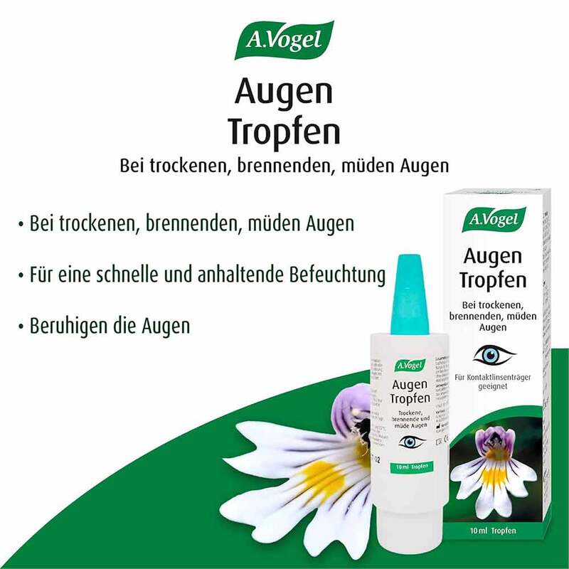 BefeuchtendManchmal können sich die Augen trocken, brennend oder müde anfühlen. Zum Beispiel durch Arbeiten am Computer, Heizung oder Klimaanlage, das Alter oder Tragen von Kontaktlinsen. A.Vogel feuchtigkeitsspendende Augen Tropfen enthalten Inhaltsstoffe, die helfen, die Augen ausreichend feucht und benetzt zu halten.