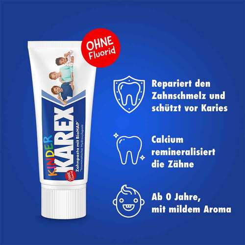 - Durch die Ähnlichkeit zum körpereigenen Zahnmineral ist BioHAP bei Verschlucken absolut unbedenklich und somit auch für Kleinkinder und Babys geeignet, die noch nicht richtig ausspucken können. Da Kinder Karex frei von Fluorid ist, gibt es keine unerwünschten Effekte wie z. B. Fluorosen, die durch Verschlucken oder Überdosierung von Fluorid auftreten können.