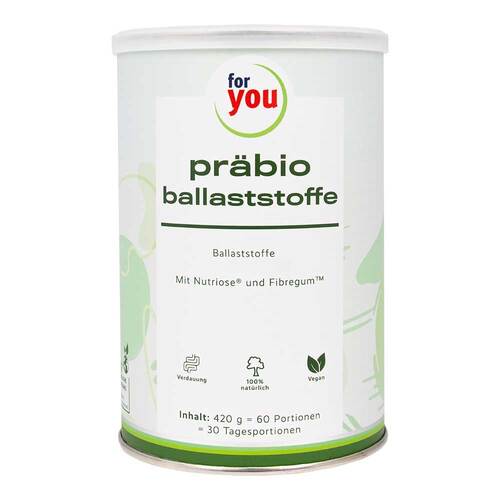 For You Präbio Ballaststoffe Pulver ist ein geschmacksneutrales Pulver mit sehr hohem Gehalt an löslichen pflanzlichen Ballaststoffen. Es enthält die eingetragenen Markenrohstoffe Fibergum aus der Akazienfaser aus ökologischem Landbau und Fibersol-2 resistentes Dextrin aus Mais.