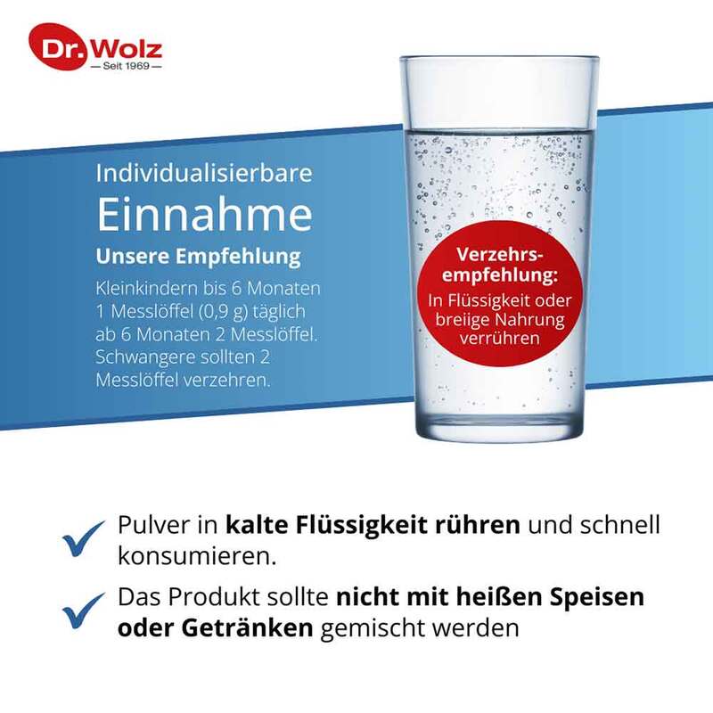 - Schwangere – 2x täglich zwei Messlöffel (1,8 g)
