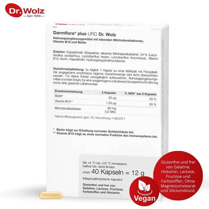 Kapselinhalt: Maisstärke, lebende Milchsäurebakterien (Lactobacillus acidophilus, Lactobacillus reuteri, Lactobacillus rhamnosus), Vitamin B12, Biotin.