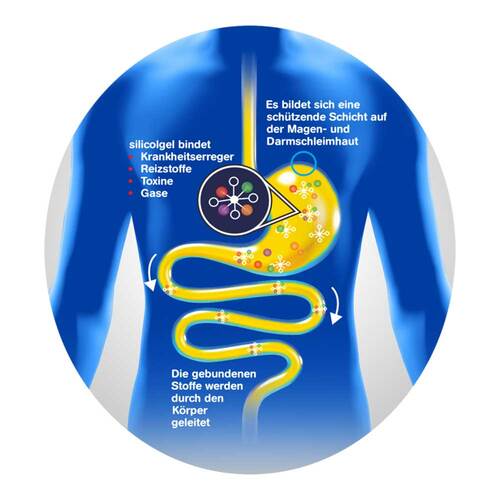 Wie wirkt silicol®gel?silicol®gel enthält Kieselsäure, eine Verbindung aus Silicium und Sauerstoff in kolloidaler und wasserhaltiger Form, welche bei Einnahme ihre positive Wirkung im Magen-Darm-Trakt entfalten kann.
