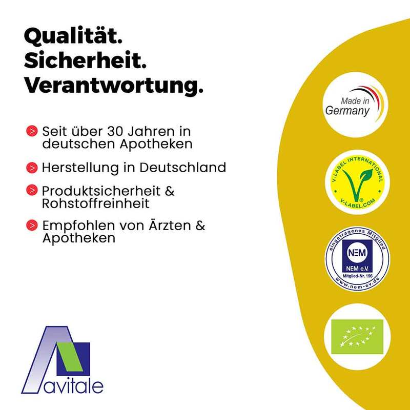 Nahrungsergänzungsmittel sind kein Ersatz für eine ausgewogene und abwechslungsreiche Ernährung und eine gesunde Lebensweise. Die angegebene empfohlene tägliche Verzehrmenge darf nicht überschritten werden. Das Produkt außerhalb der Reichweite von kleinen Kindern lagern.