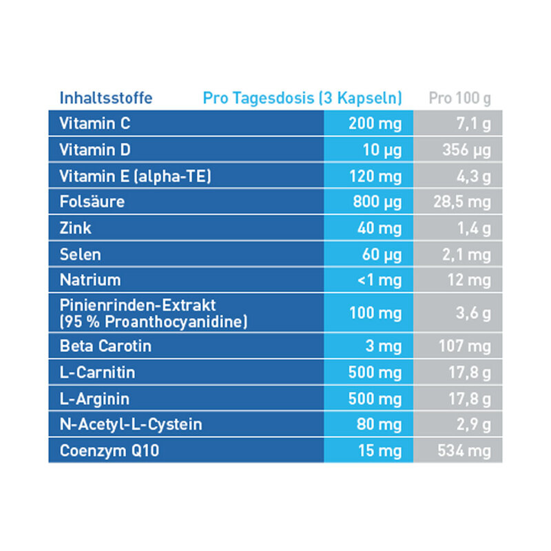 | Pinienrindenextrakt | 100 mg | 3.6 g |