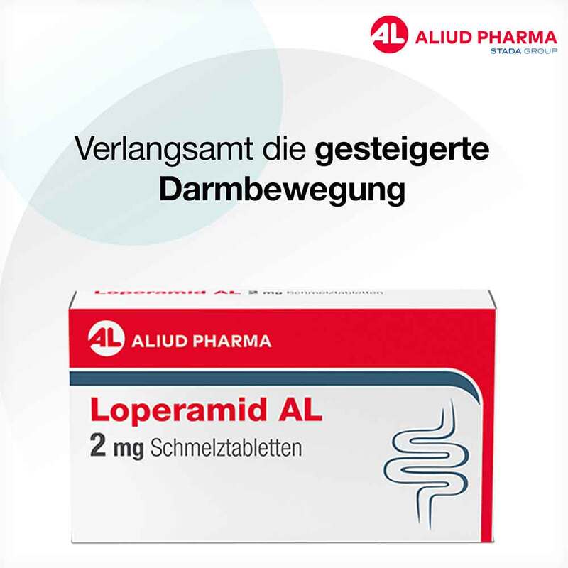 - Jugendliche ab 12 Jahren zu Beginn der Behandlung von akuten Durchfällen 1 Schmelztablette Loperamid AL 2 mg und nach jedem ungeformten Stuhl 1 weitere Schmelztablette. Die Tageshöchstdosis von 4 Schmelztabletten darf nicht überschritten werden.