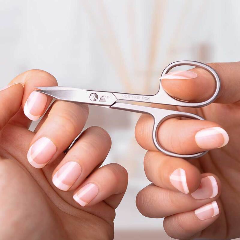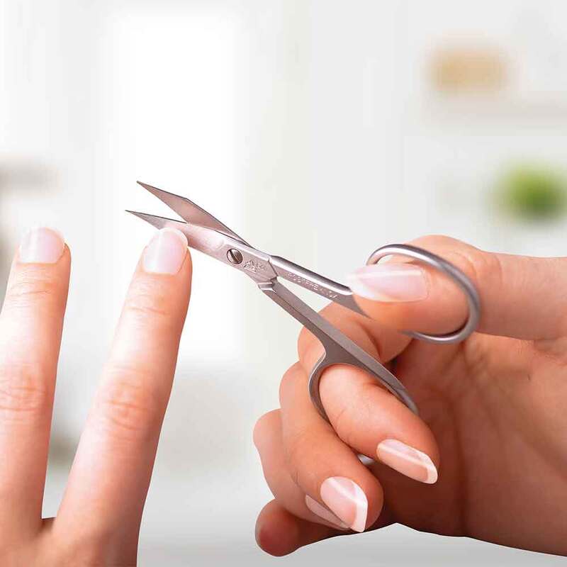 Der vordere, feine Bereich der Schere ist speziell dafür konzipiert, die Nagelhaut präzise zu entfernen. Diese feine Klinge ermöglicht es Ihnen, selbst in schwer zugänglichen Bereichen sorgfältig zu arbeiten, ohne die empfindliche Haut um den Nagel herum zu verletzen. So erzielen Sie ein sauberes und gepflegtes Erscheinungsbild Ihrer Nägel.