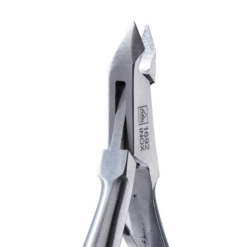 Die Zange ist aus rostfreiem, geschmiedetem Edelstahl gefertigt, was nicht nur für ihre Langlebigkeit sorgt, sondern auch hygienische Anwendungen ermöglicht, da sie sterilisierbar ist. Ein besonderes Merkmal ist die integrierte Drehfeder, die eine mühelose Handhabung gewährleistet und die Zange nach jedem Schnitt sanft wieder öffnet. Mit einer Schneiden Länge von 4 mm ist sie perfekt geeignet, um auch feine und schwierige Bereiche der Nagelhaut präzise zu bearbeiten. Ideal für alle, die Wert auf professionelle und gepflegte Nägel legen. - Made in Solingen / Germany