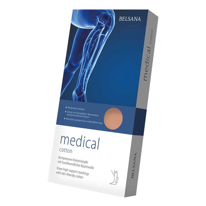 Bei den BELSANA medical cotton handelt es sich um kompressive Kniestrümpfe. Sie vereinen zahlreiche Vorteile: Sie verhindern geschwollene Füße sowie Beine, schützen vor Krampfadern und Besenreisern und wirken vorbeugend gegen Thrombosen. Dabei zeichnen sich die Strümpfe durch ihre medizinische Wirksamkeit aus. Sie sind hautfreundlich dank natürlicher Baumwolle und schenken Ihnen ein weiches Tragegefühl – sowohl für die Frau als auch den Mann!