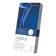 Bei den BELSANA medical cotton handelt es sich um kompressive Kniestrümpfe. Sie vereinen zahlreiche Vorteile: Sie verhindern geschwollene Füße sowie Beine, schützen vor Krampfadern und Besenreisern und wirken vorbeugend gegen Thrombosen. Dabei zeichnen sich die Strümpfe durch ihre medizinische Wirksamkeit aus. Sie sind hautfreundlich dank natürlicher Baumwolle und schenken Ihnen ein weiches Tragegefühl – sowohl für die Frau als auch den Mann!