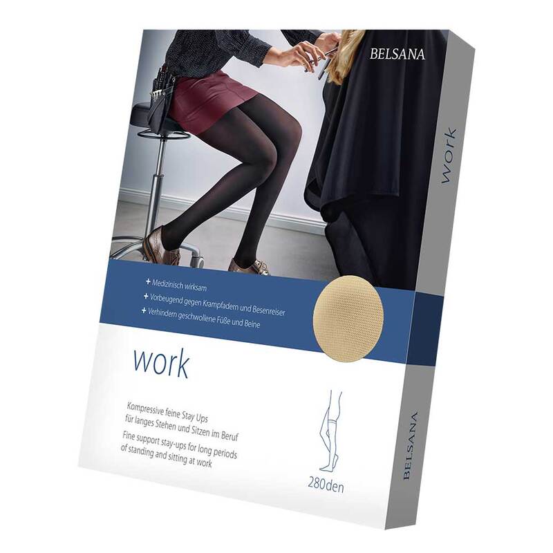 Die kompressiven Strümpfe BELSANA work gibt es in zahlreichen aktuellen Modefarben. Sie bieten ein angenehmes Tragegefühl und zusätzlich einen Shaping-Effekt für eine optisch schlankere Silhouette.