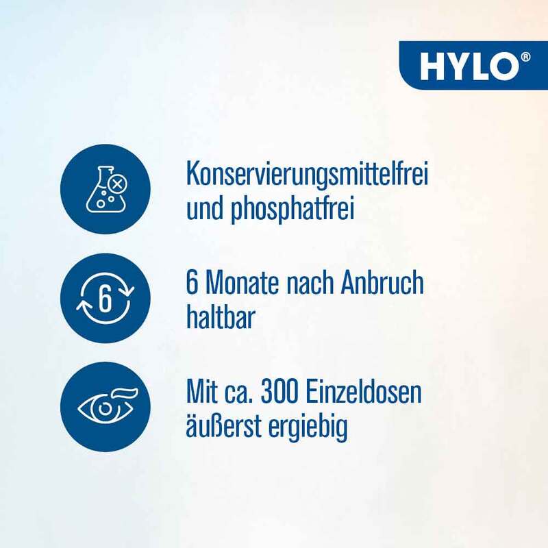 Im Schlaf wird kaum Tränenflüssigkeit produziert, eine regelmäßige Befeuchtung mit Augentropfen ist über Nacht nicht möglich. Speziell für den nächtlichen Schutz der Augenoberfläche wurde HYLO NIGHT® entwickelt. Die weiche und geschmeidige Augensalbe verteilt sich gut auf der gereizten Augenoberfläche und lindert mit dem Inhaltsstoff Vitamin A das Gefühl brennender, trockener und müder Augen. HYLO NIGHT® ist frei von Konservierungsmitteln und daher sehr gut verträglich. Die ergiebige Augensalbe ist 6 Monate nach Anbruch der Tube haltbar. HYLO NIGHT® eignet sich als nächtliche Ergänzung von HYLO® Augentropfen bei allen Stadien trockener Augen.