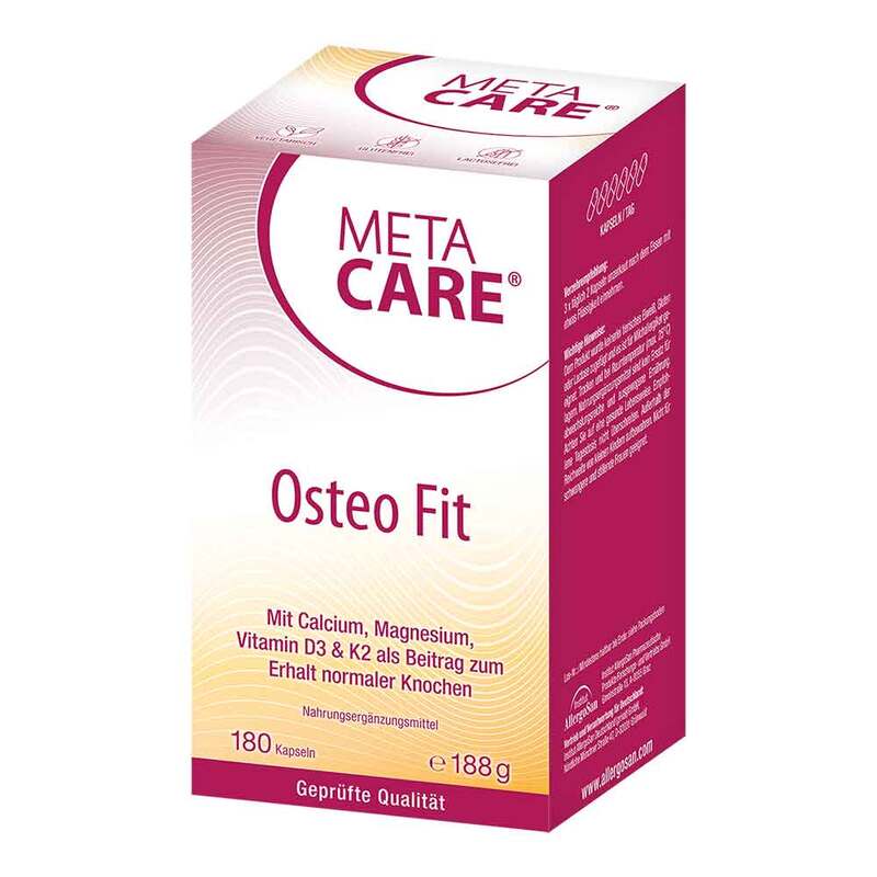 Meta Care Osteo Fit enthält pflanzliches Calcium aus der Rotalge sowie Magnesium in gut aufnehmbarer Citrat-Verbindung. Vitamin D unterstützt die Aufnahme und Verwertung von Calcium entscheidend. Gemeinsam mit Vitamin K ist Vitamin D außerdem ein sehr wichtiger Nährstoff für unsere Knochen.* Vitamin D kann unser Körper zwar mit Hilfe des Sonnenlichts selbst bilden, jedoch kann der menschliche Bedarf in unseren Breitengraden damit meist nicht ausreichend gedeckt werden. Meta Care Osteo Fit enthält deshalb eine umfassende Kombination wichtiger Nährstoffe für unsere Knochen.*