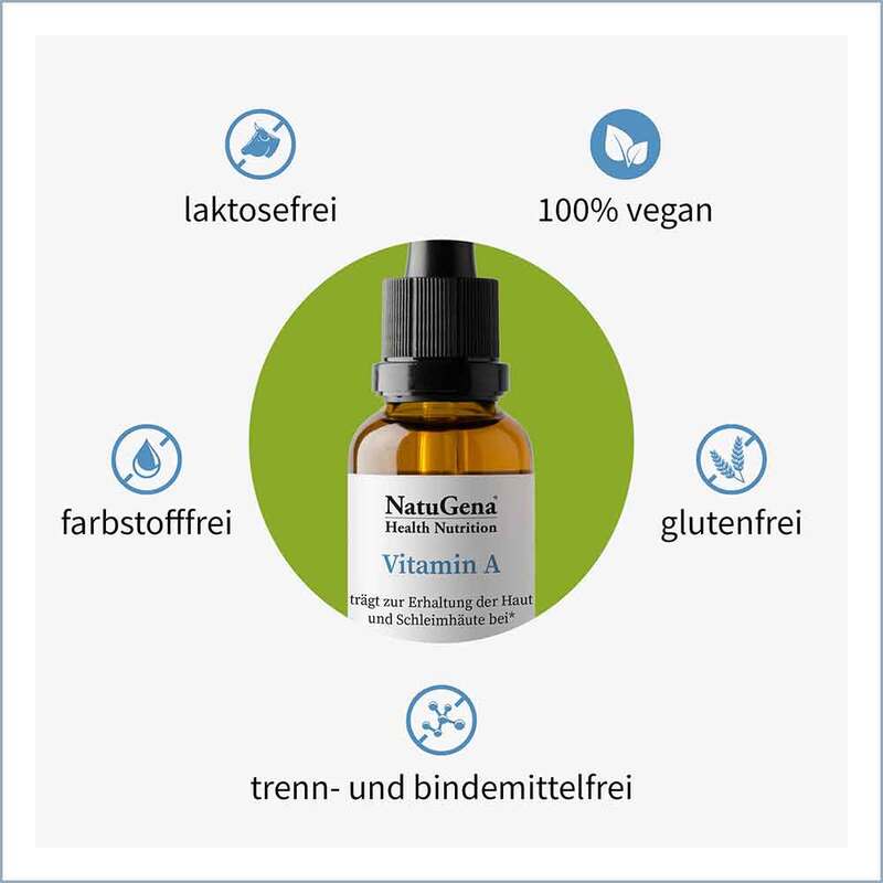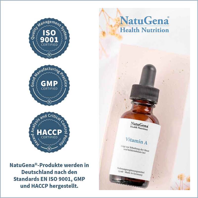 Vitamin A zählt zu den fettlöslichen Vitaminen und liegt als Retinolpalmitat in einer sehr guten Speicherform für den menschlichen Organismus vor und kann somit rasch in die bioaktive Form umgewandelt werden. Vitamin A als Augenvitamin ist nicht nur für die Erhaltung einer normalen Sehkraft von wesentlicher Bedeutung, sondern trägt auch zur Erhaltung der Haut und Schleimhäute bei. Zudem ist es auch bedeutsam bei der Verstoffwechselung von Eiweißen. Eiweißreiche Ernährung, Schwangerschaft, Stress und Krankheiten können zu einem erhöhten Bedarf führen.