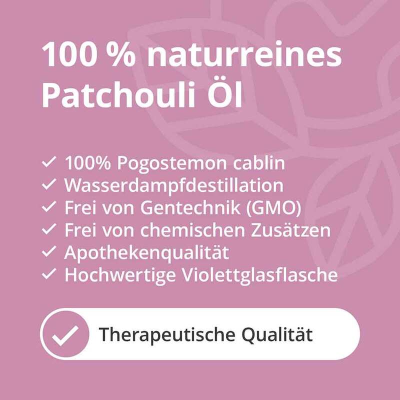 - Patchouliöl ist ideal für die Aromatherapie und für Aromadiffuser geeignet