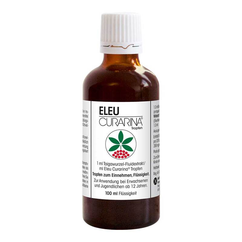 ELEU CURARINA® Tropfen.Wirkstoff: Taigawurzel-Fluidextrakt (Eleutherococcus senticosus) (1 : 1). Anwendungsgebiete: Traditionelles pflanzliches Arzneimittel zur Behandlung von Erschöpfungs- zuständen wie Müdigkeit und Schwäche für Erwachsene und Jugendliche ab 12 Jahren. Das Arzneimittel ist ein traditionelles Arzneimittel, das ausschließlich aufgrund langjähriger Anwendung für das Anwendungsgebiet registriert ist. Hinweis: Das Arzneimittel enthält 358 mg Alkohol (Ethanol) pro 30 Tropfen, entsprechend 358 mg pro 1,4 ml Volumen. Packungsbeilage beachten. Zu Risiken und Nebenwirkungen lesen Sie die Packungsbeilage und fragen Sie Ihre Ärztin, Ihren Arzt oder in Ihrer Apotheke.