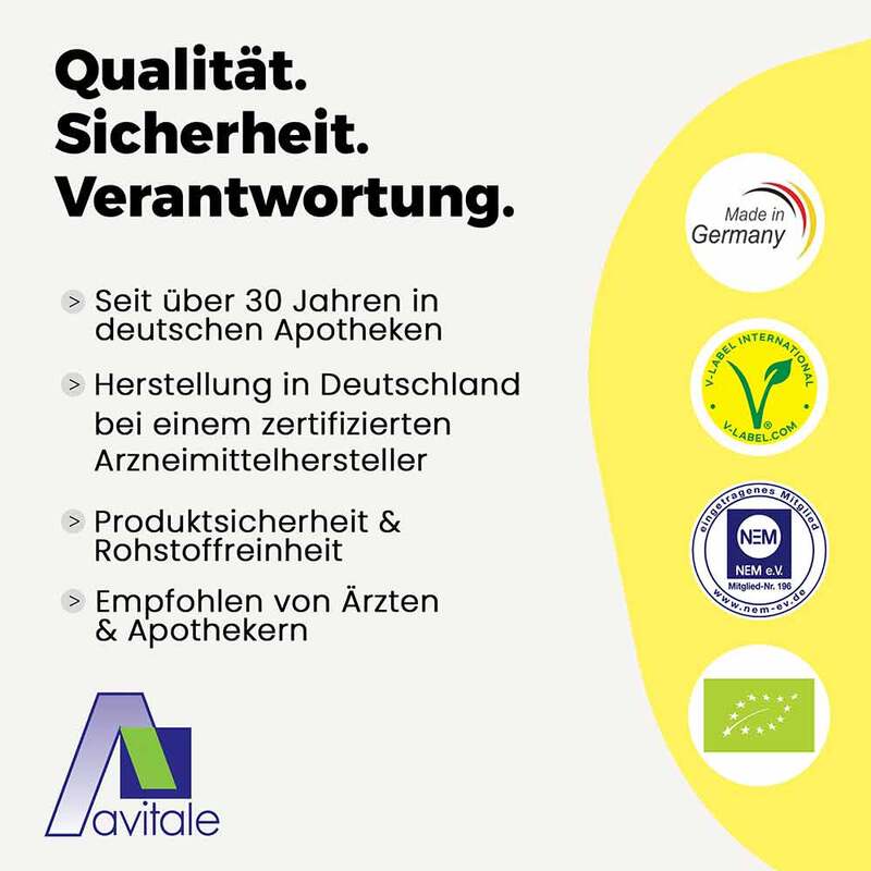 Nahrungsergänzungsmittel sind kein Ersatz für eine ausgewogene und abwechslungsreiche Ernährung und eine gesunde Lebensweise. Die angegebene empfohlene tägliche Verzehrmenge darf nicht überschritten werden.