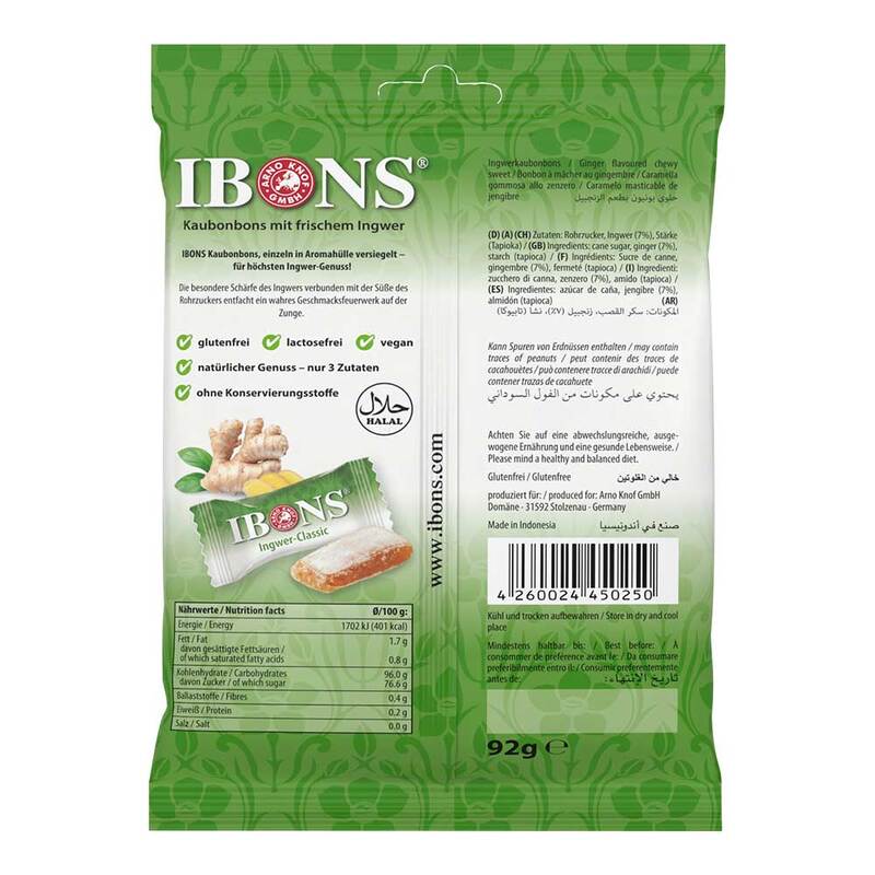 Ibons Ingwer Classic Tüte Kaubonbons, 92 g