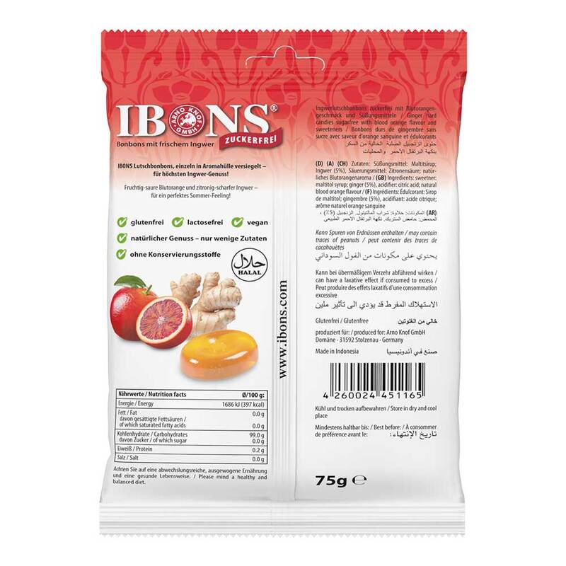 Ibons Ingwer Blutorange ohne Zucker Tüte Lutschbonbons , 75 g