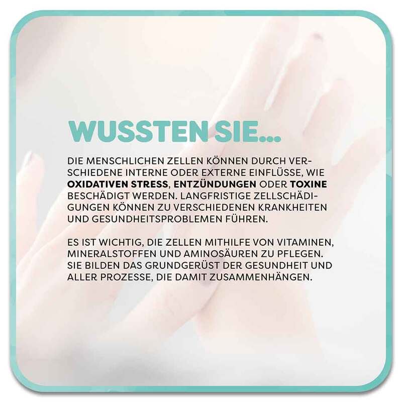 * Vitamin C, Vitamin E, Riboflavin (Vitamin B2) und Zink tragen dazu bei, die Zellen vor oxidativem Stress zu schützen. Vitamin B12 und Zink haben eine Funktion bei der Zellteilung. Thiamin, Niacin, Vitamin B6 und B12 tragen zu einer normalen Funktion des Nervensystems bei. Thiamin, Niacin, Vitamin B6 und Vitamin B12 tragen zu einem normalen Energiestoffwechsel bei.