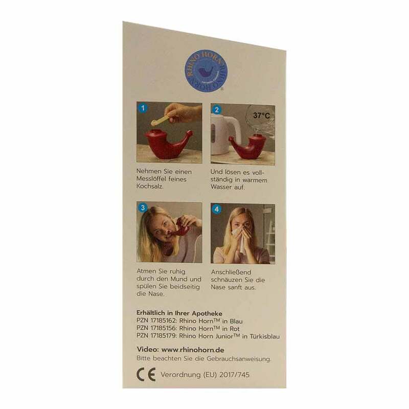 Die Nasendusche für Erwachsene und Kinder ab 12 Jahren (in Blau und in Rot).Rhino Horn™ ist eine Nasendusche, die speziell für Kinder ab 12 Jahren und Erwachsene entwickelt wurde. Das Rhino Horn™ passt sich optimal den Naseneingängen an.