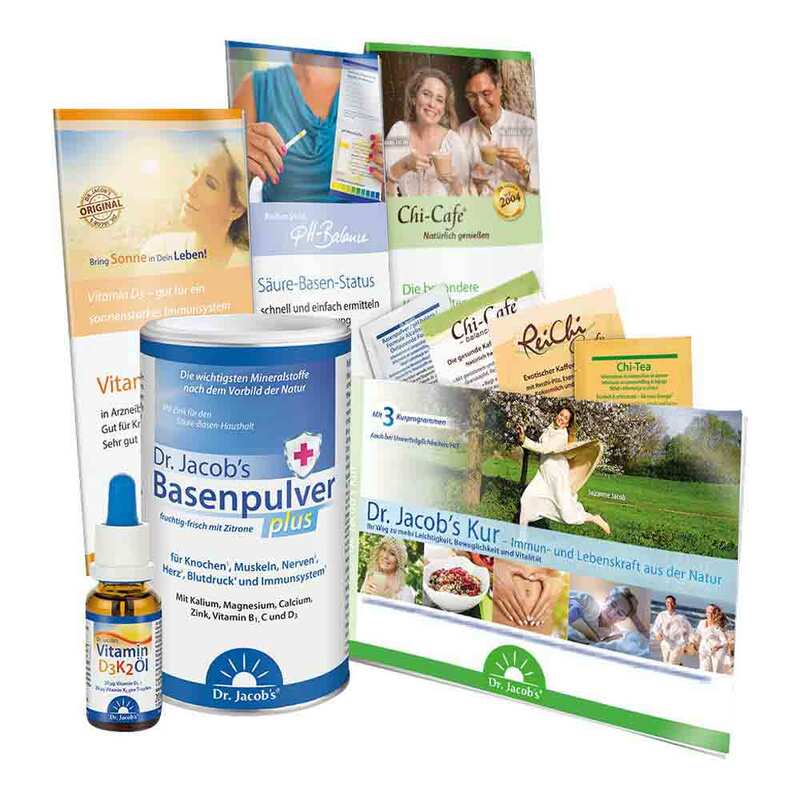 - 1 x Dr. Jacob’s Basenpulver Muster, 4,5 g (1 Portion): Das Original: Für Ihre Basen- und Mineralstoff-Balance. Dr. Jacob’s Basenpulver unterstützt mit Zink den normalen Säure-Basen-Stoffwechsel.