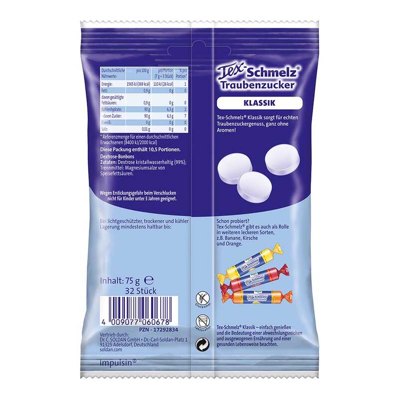 Tex-Schmelz Klassik Traubenzucker, 75 g
