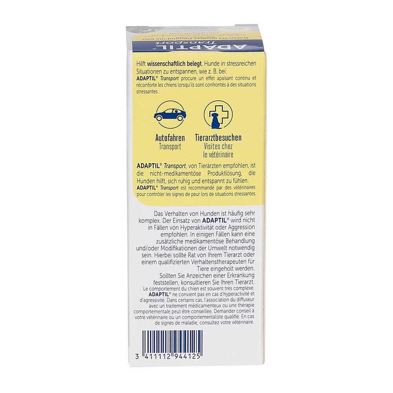 Das Adaptil Transport Spray hilft Ihrem Hund bei Autofahrten und Reisen entspannt zu bleiben. Es bietet eine geeignete Möglichkeit, Hunden auf der Reise oder beim Tierarztbesuch zu helfen. Sprühen Sie das Spray einfach in die Transportbox oder in das Auto, 15 Minuten bevor Sie Ihren Hund dorthin führen.