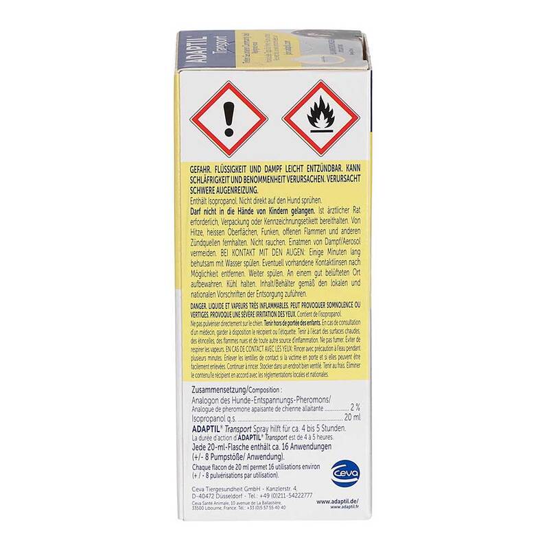Das Adaptil Transport Spray sollte nicht direkt auf Tiere oder in der Nähe des Tieres gesprüht werden.
