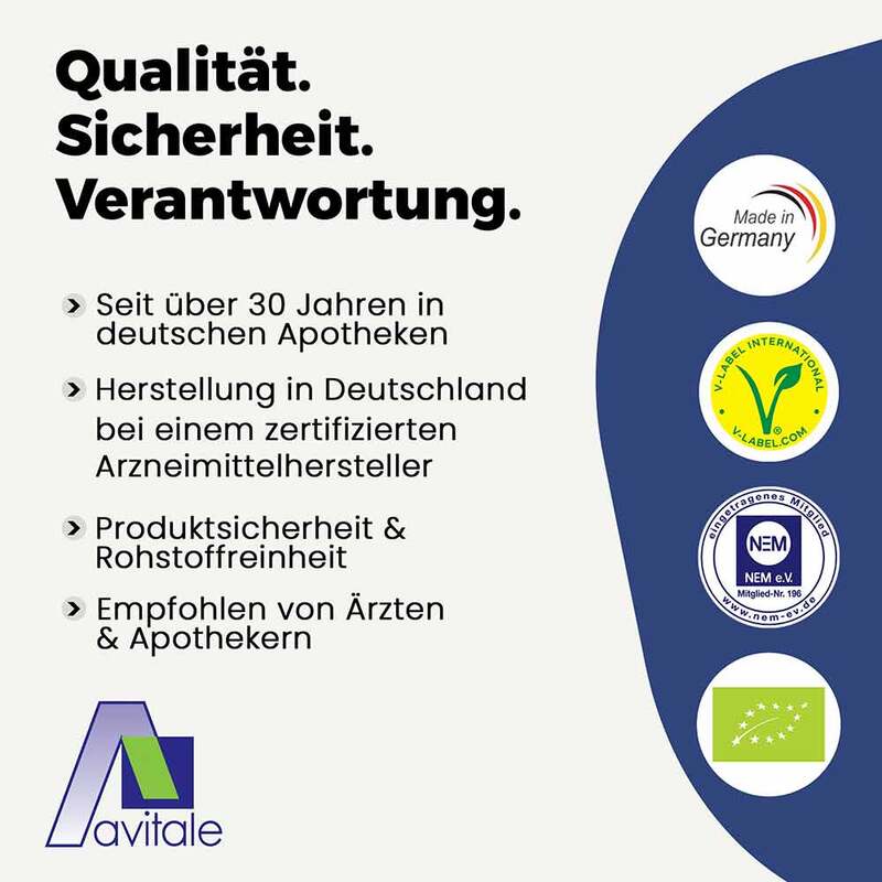 Nahrungsergänzungsmittel sind kein Ersatz für eine ausgewogene und abwechslungsreiche Ernährung und gesunde Lebensweise. Die tägliche Verzehrempfehlung darf nicht überschritten werden.