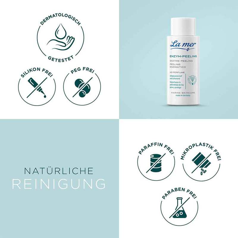 Das spezielle Enzym-Peeling mit Meeresschlick-Trockenpulver und zusätzlichen Enzymen reinigt die Haut porentief und schonend. Abgestorbene Hautschüppchen und Verhornungen werden ohne mechanischen Reiz entfernt. Auch für empfindliche Haut geeignet.