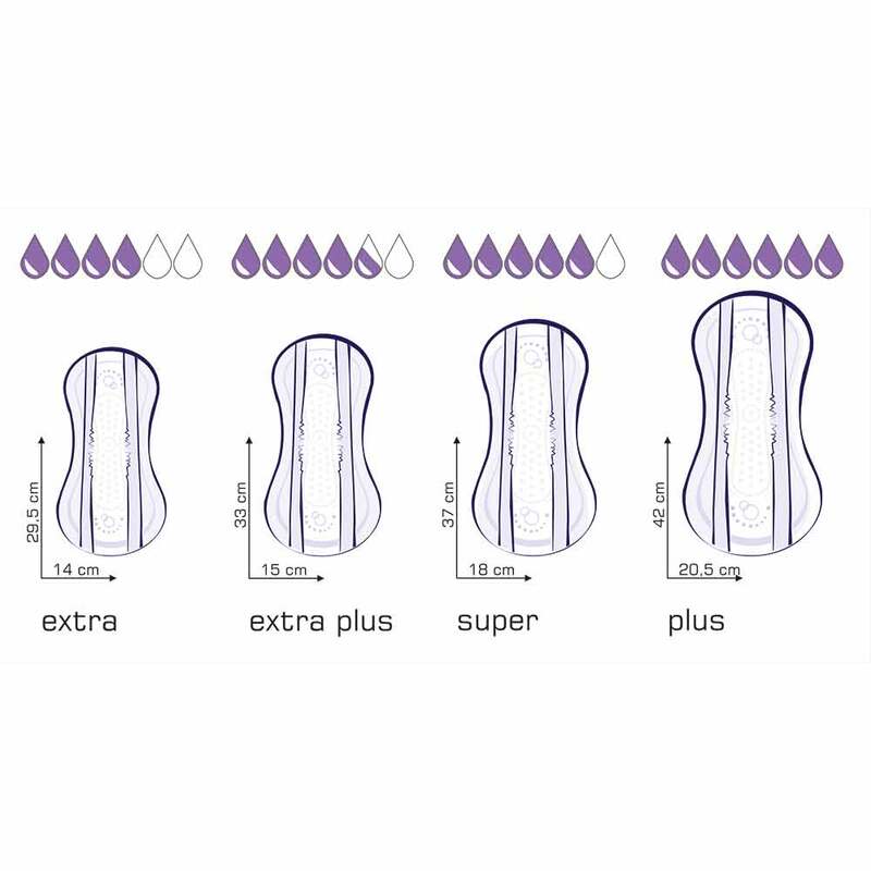 Inhalt: Zellstoff, Superabsorber, atmungsaktive Außenschicht, hydrophiles Vlies, hydrophobes Vlies (außer: Micro), Verteilungsvlies (außer Micro), elastisches Bändchen (außer Micro, Mini, Mini Plus, Normal), elastisches Garn (außer Micro), thermoplastische Kleber, silikonbeschichtetes Papier, Farbe (außer Mini Plus).