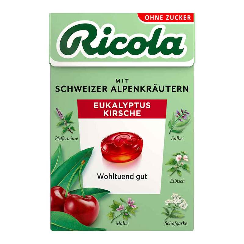 Ricola ohne Zucker Box Eukalyptus Kirsche Bonbons, 50 g