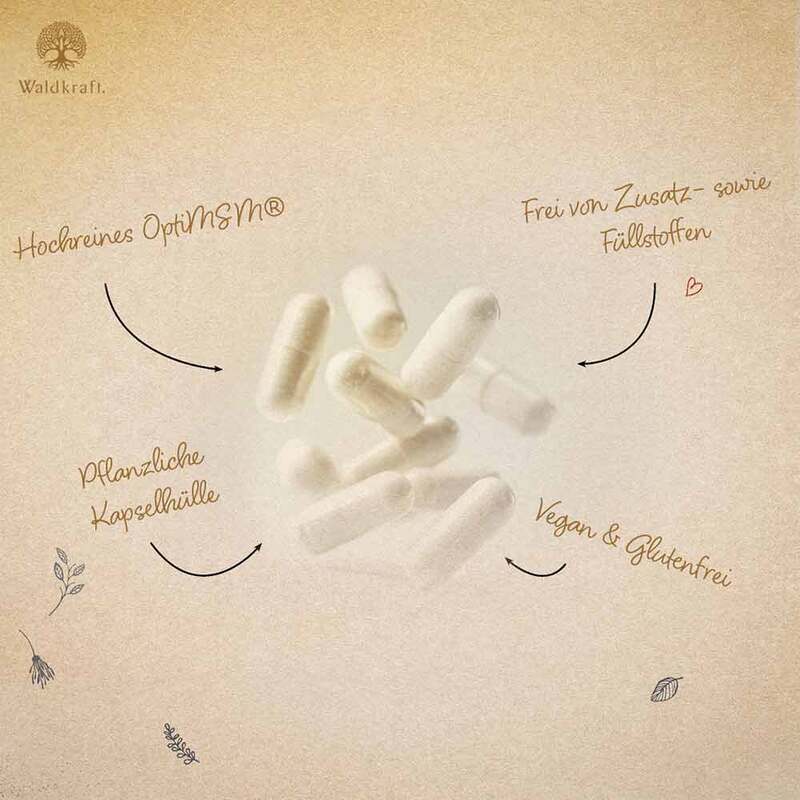Das in Waldkraft MSM Premium enthaltene OptiMSM® steht für eine besonders hohe Qualität: Es wird in einem mehrstufigen Destillierverfahren gereinigt, ist frei von Verunreinigungen und zeichnet sich durch eine konstant hohe Reinheit aus.