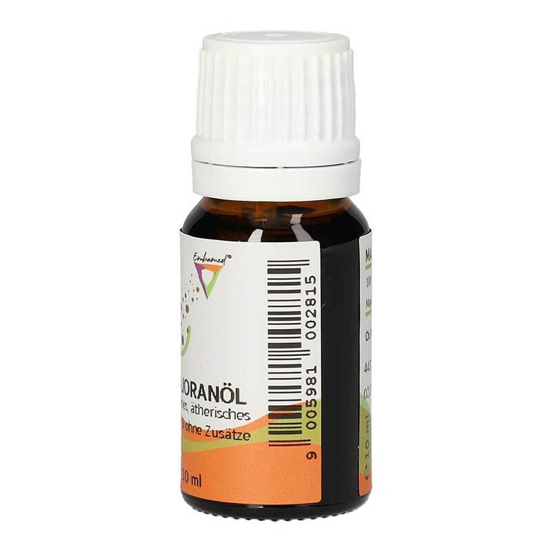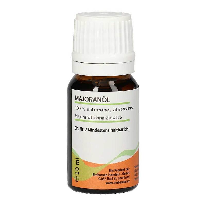 Majoranöl Embamed® wird durch Wasserdampfdestillation aus dem Kraut des Majoran (Origanum majorana) gewonnen. Es wird bei nervöser Anspannung sowie bei Erkältungsbeschwerden eingesetzt.