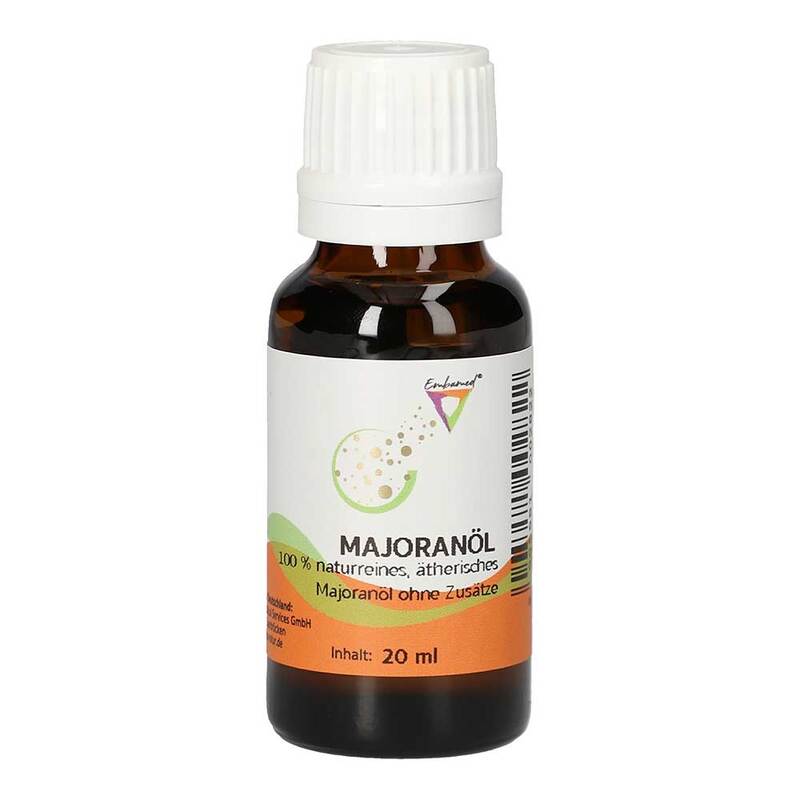 Majoranöl Embamed® wird durch Wasserdampfdestillation aus dem Kraut des Majoran (Origanum majorana) gewonnen. Es wird bei nervöser Anspannung sowie bei Erkältungsbeschwerden eingesetzt.