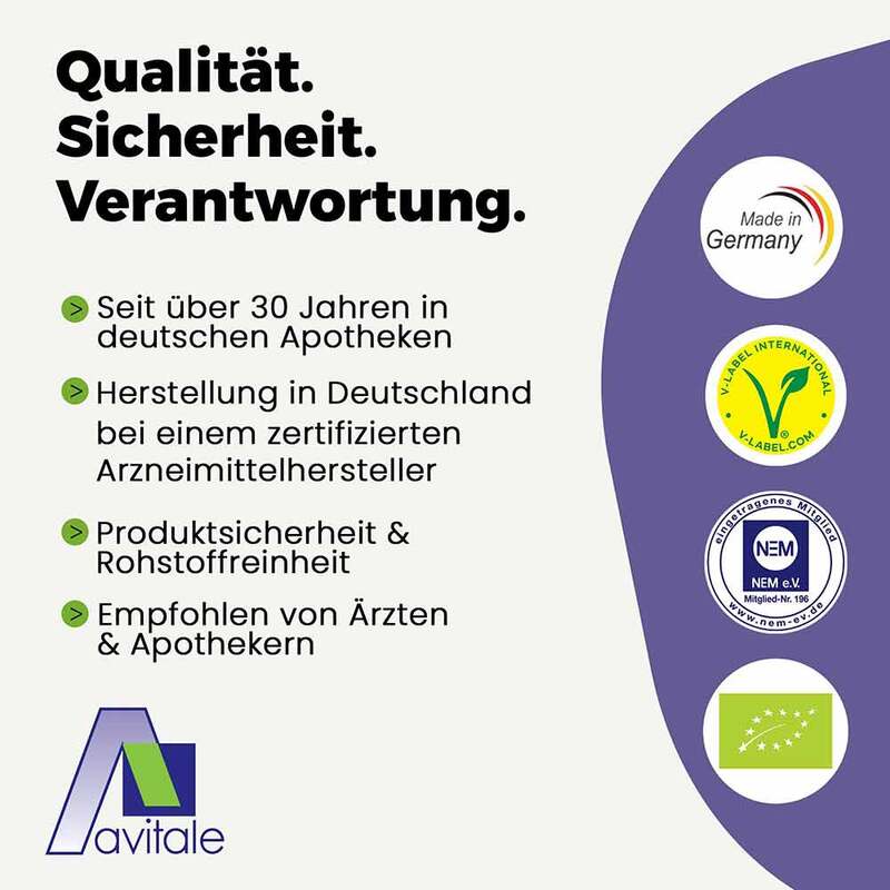 Die tägliche Verzehrempfehlung darf nicht überschritten werden. Nahrungsergänzungsmittel sind kein Ersatz für eine ausgewogene und abwechslungsreiche Ernährung und gesunde Lebensweise.