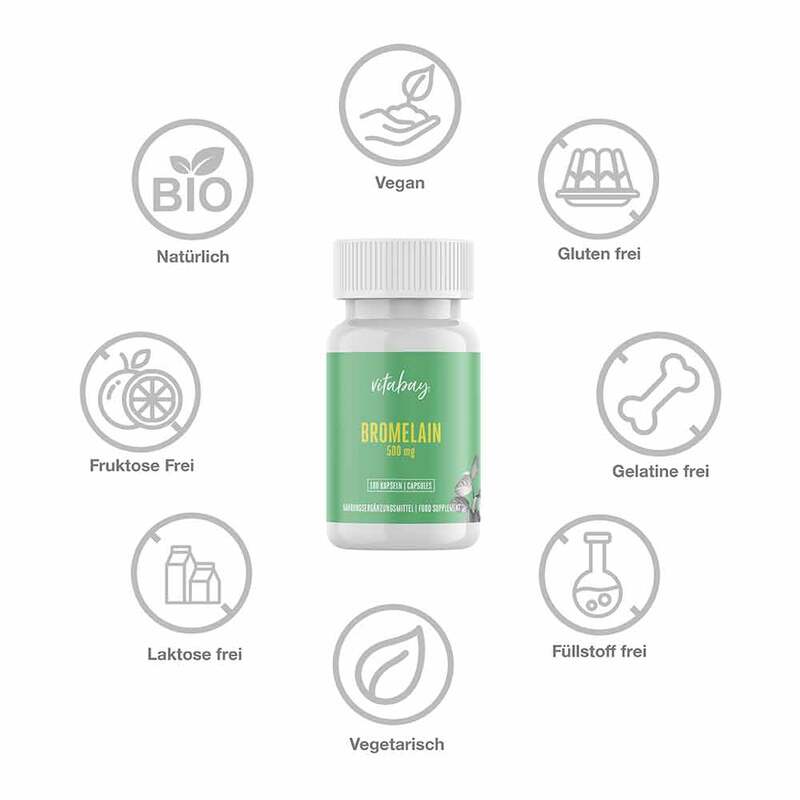 Bromelain 500 mg 1200 F.I.P aus Ananas vegan Kapseln , 100 St