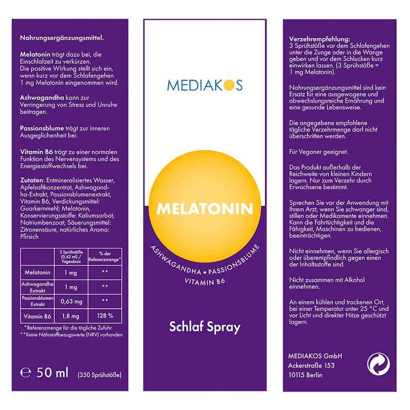 Melatonin Ashwagandha Mediakos Schlaf Spray vegan
