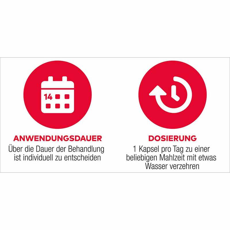 1 Kapsel pro Tag zu einer beliebigen Mahlzeit mit etwas Wasser verzehren. Die Einnahme zu einer öl- oder fetthaltigen Mahlzeit kann die Resorption positiv beeinflussen.