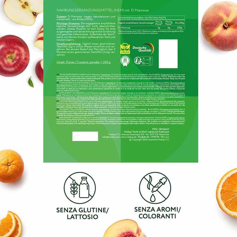 D-Mannose (vegan, naturbelassen und unbestrahlt - aus Birke) (100%).