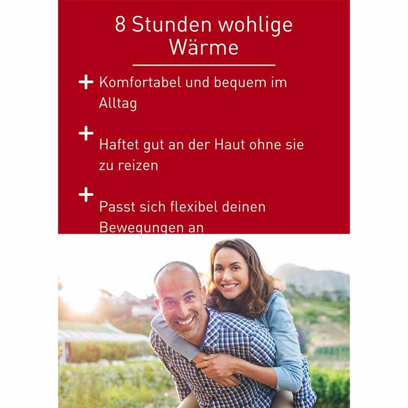 4. Die von den Pflastern ausgehende Wärme verbessert die Durchblutung und die Sauerstoffversorgung des Gewebes. Das entspannt und lindert die Schmerzen in den Muskeln und Gelenken.