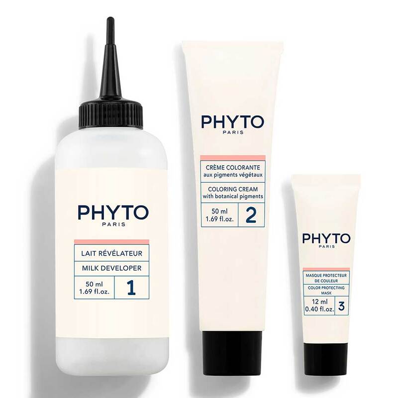 Diese Verpackung enthält: 1 Flasche Entwicklermilch 1.69 fl. oz. - 1 Tube Farbcreme 1.69 fl. oz. - 1 PHYTO PARISCOLOR Maske 0.40 fl.oz. - 1 Beipackzettel - 1 Paar Handschuhe.